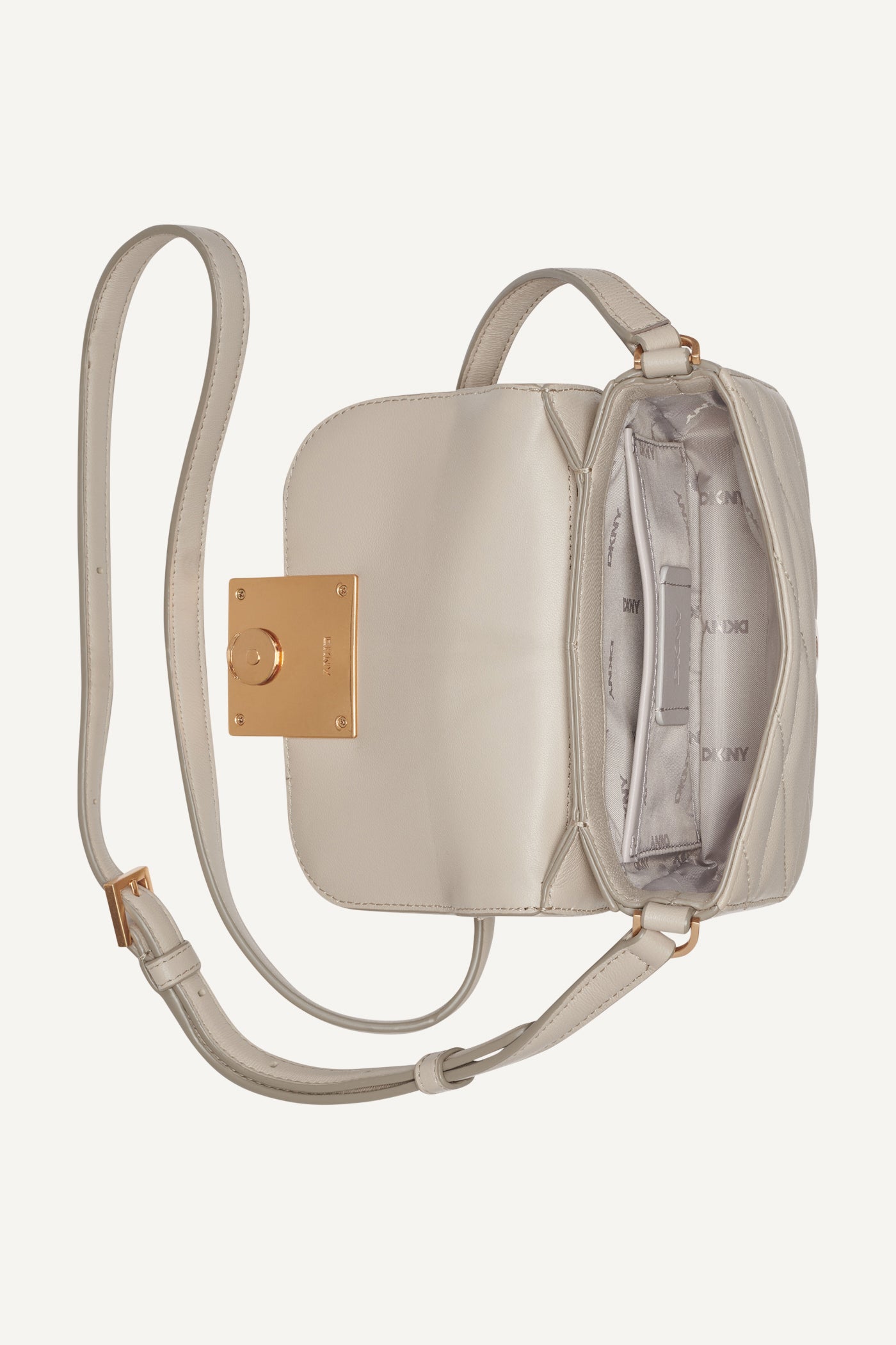 تألقي بحقيبة كروس DKNY دارسي بتصميمها الأنيق بغطاء قلاب باللون البيج الكلاسيكي، وانعمي بلمسة من الرقي العفوي غير المتكلف. صُممت هذه الحقيبة الصغيرة بالكامل من جلد البقر بنسبة 100%، وتتميز بغطاء قلاب أنيق وحزام قابل للتعديل؛ ما يجعلها الخيار الأمثل لإطلالات أنيقة ومتنوعة ترافقكِ من الصباح وحتى المساء. كوني محط الأنظار وانعمي بالأناقة العصرية المميزة لعلامة DKNY. رمز المنتج: R61EKO18LT3