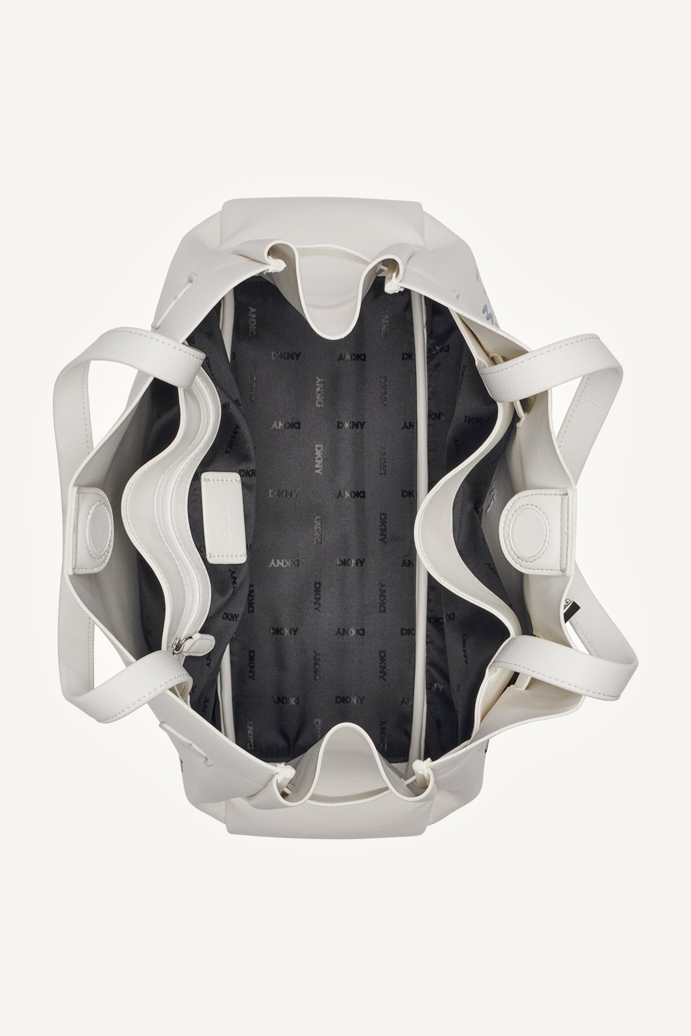 ارتقِ بإطلالتكِ مع حقيبة ساتشيل DKNY برايار بالحجم الكبير باللون الأبيض الناصع. هذه الحقيبة الراقية مصنوعة من البولي يوريثان المتين مع حواف أنيقة من مادة بولي كلوريد الفينيل، وتتميز بمقبض علوي ومساحة واسعة وهيكل انسيابي وأناقة سهلة التنسيق مناسبة للغاية لإطلالاتكِ اليومية أو عطلة نهاية الأسبوع.