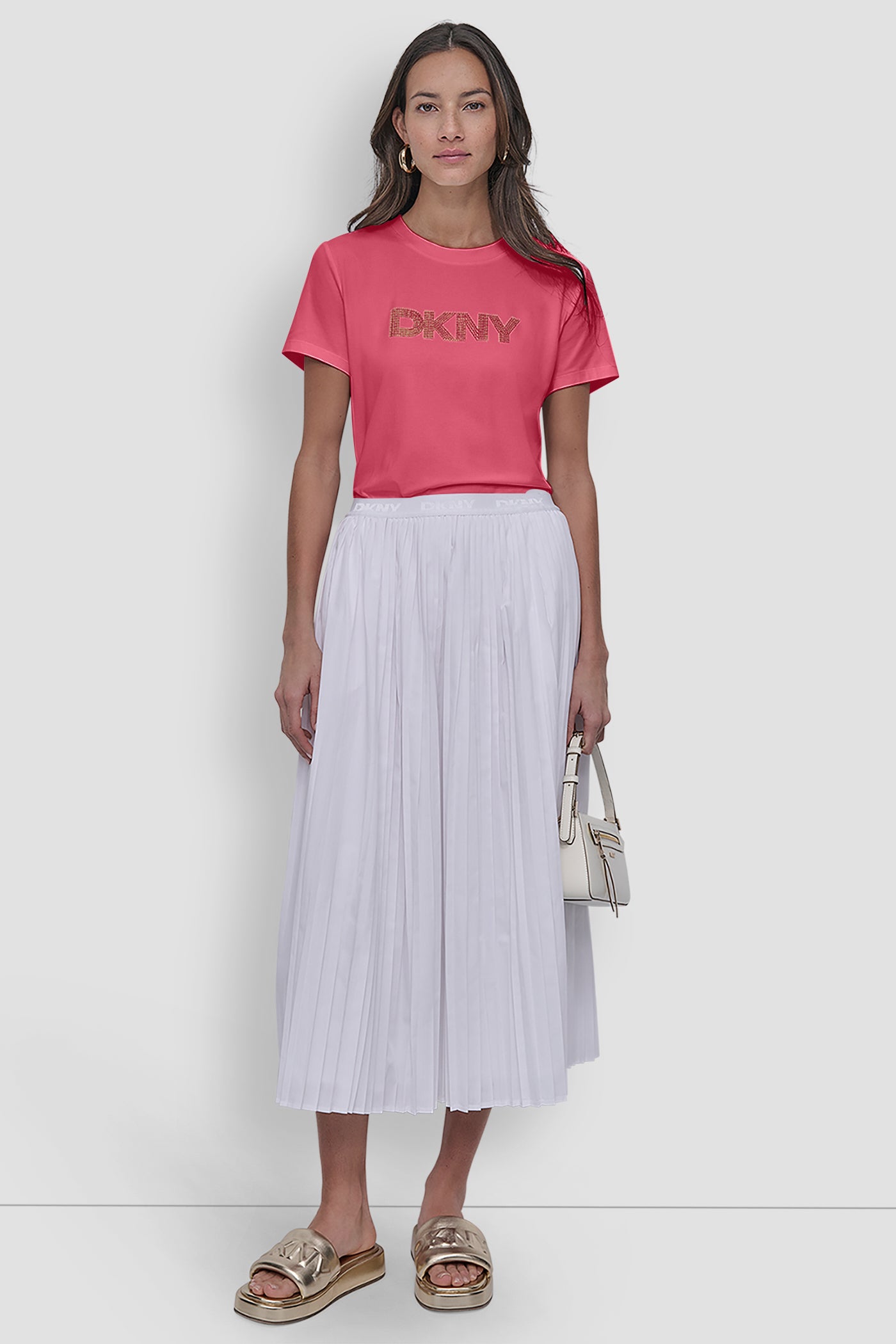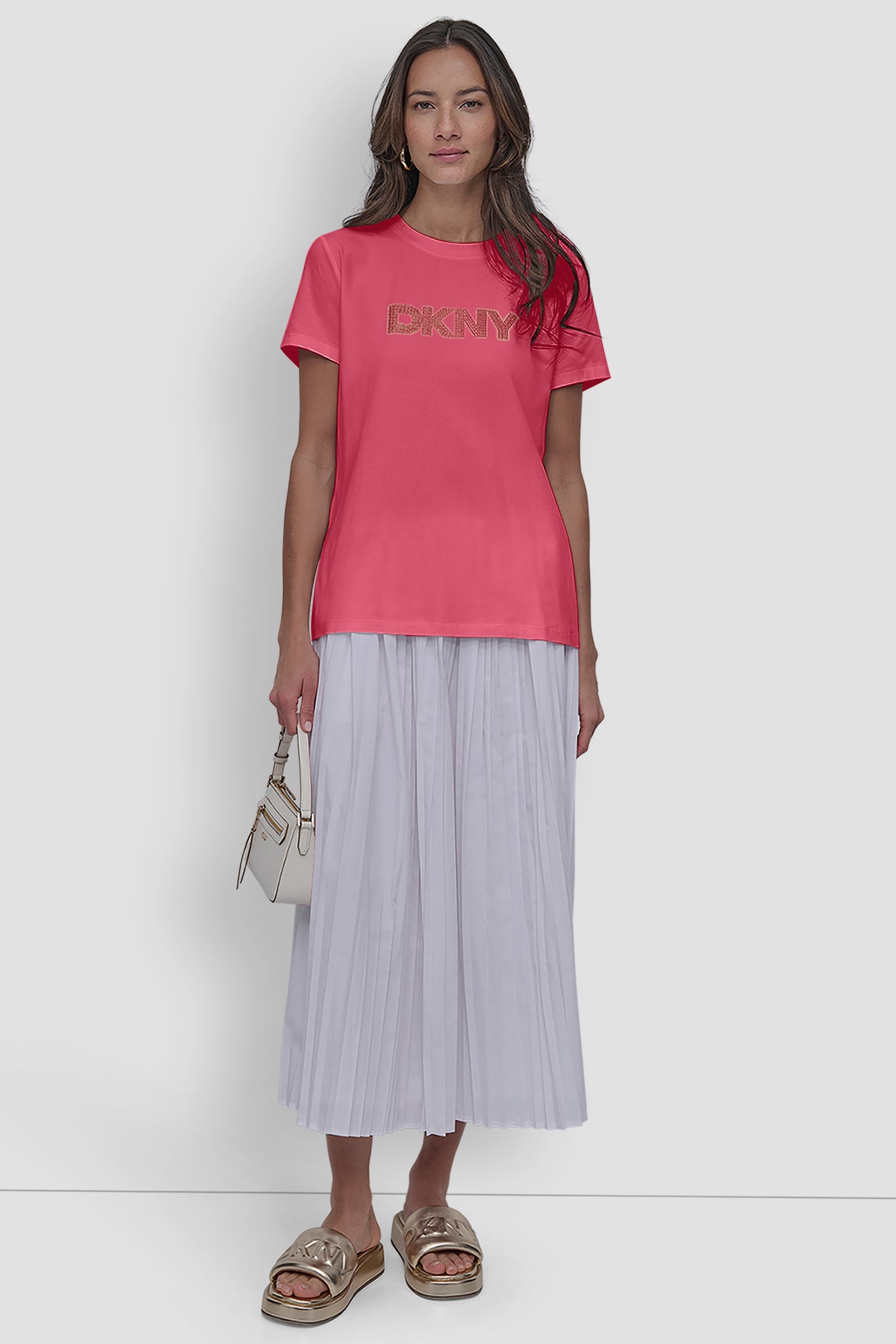 أضيفي لمسة أنيقة على إطلالتكِ مع تيشيرت DKNY بتصميمه الأنيق بأكمام قصيرة والمزين بشعار العلامة باللون الوردي المشرق. صُممت هذه القطعة من قماش فائق النعومة وجيد التهوية، وتأتي بشعار العلامة بتصميم أنيق مع فتحة رقبة كلاسيكية مستديرة وقصة مريحة؛ ما يمنحكِ خيارات تنسيق متعددة تناسب إطلالاتكِ من النهار إلى الليل بكل سهولة. رمز المنتج: P5KHFWF3VVP