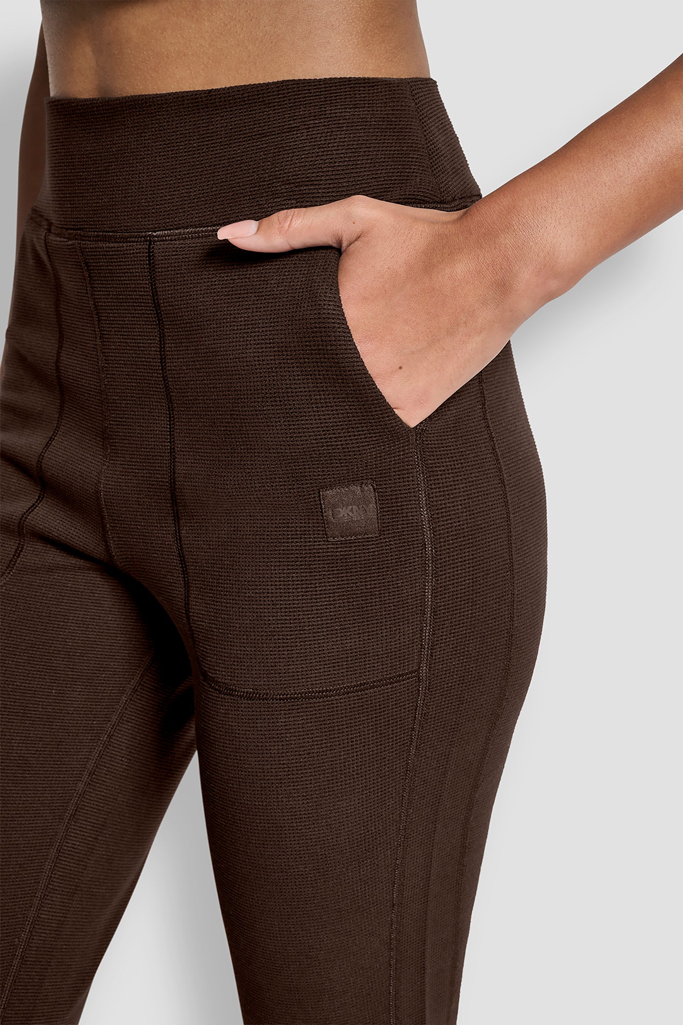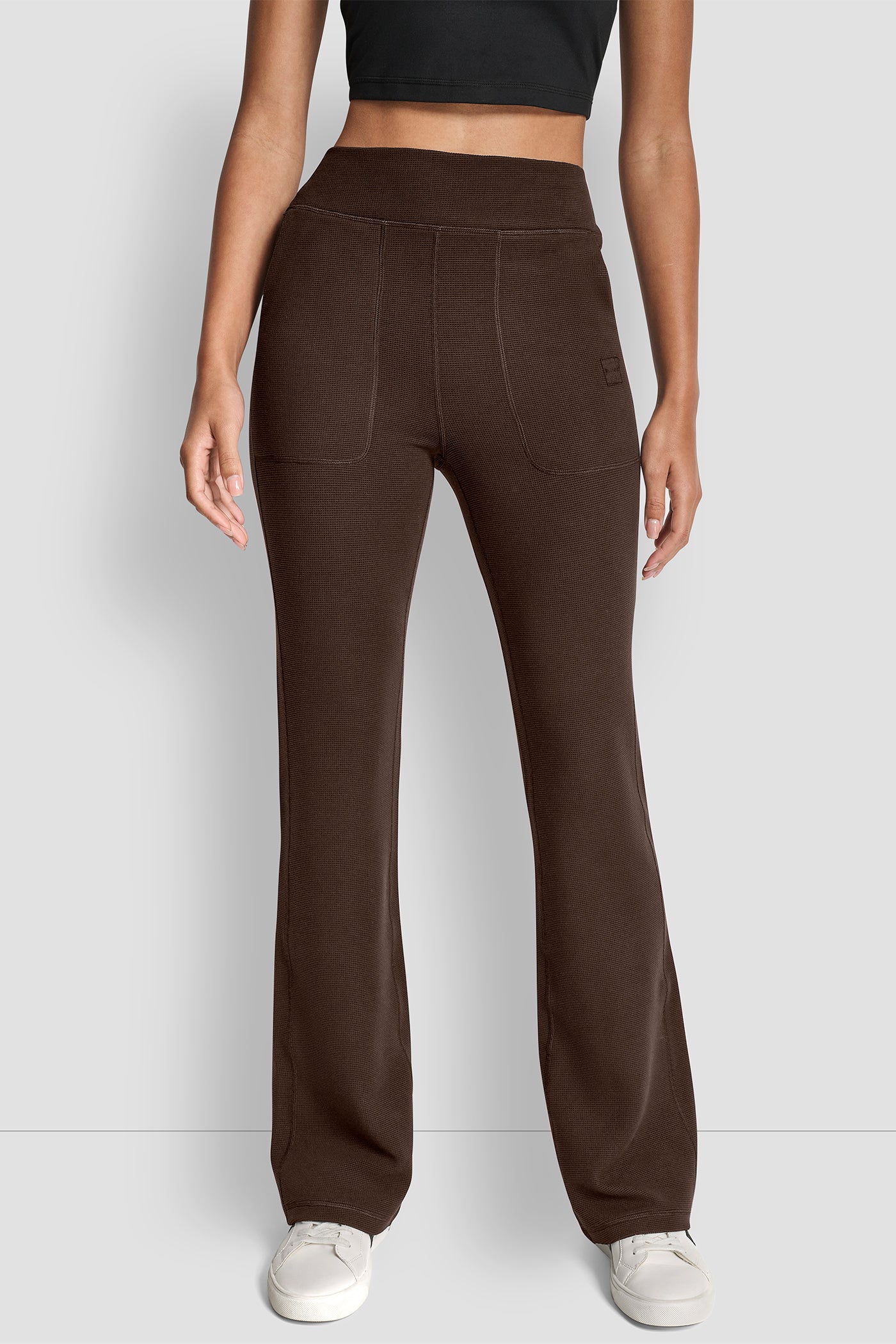 Elevate your closet with the DKNY TRNSND THMRL HW FLAR pants in rich brown. Featuring a high-waisted, figure-flattering flare silhouette and crafted with comfort thermal fabric, these versatile pants effortlessly combine modern style with warmth perfect for cool-weather chic. Item ID: DP5P3708ESP