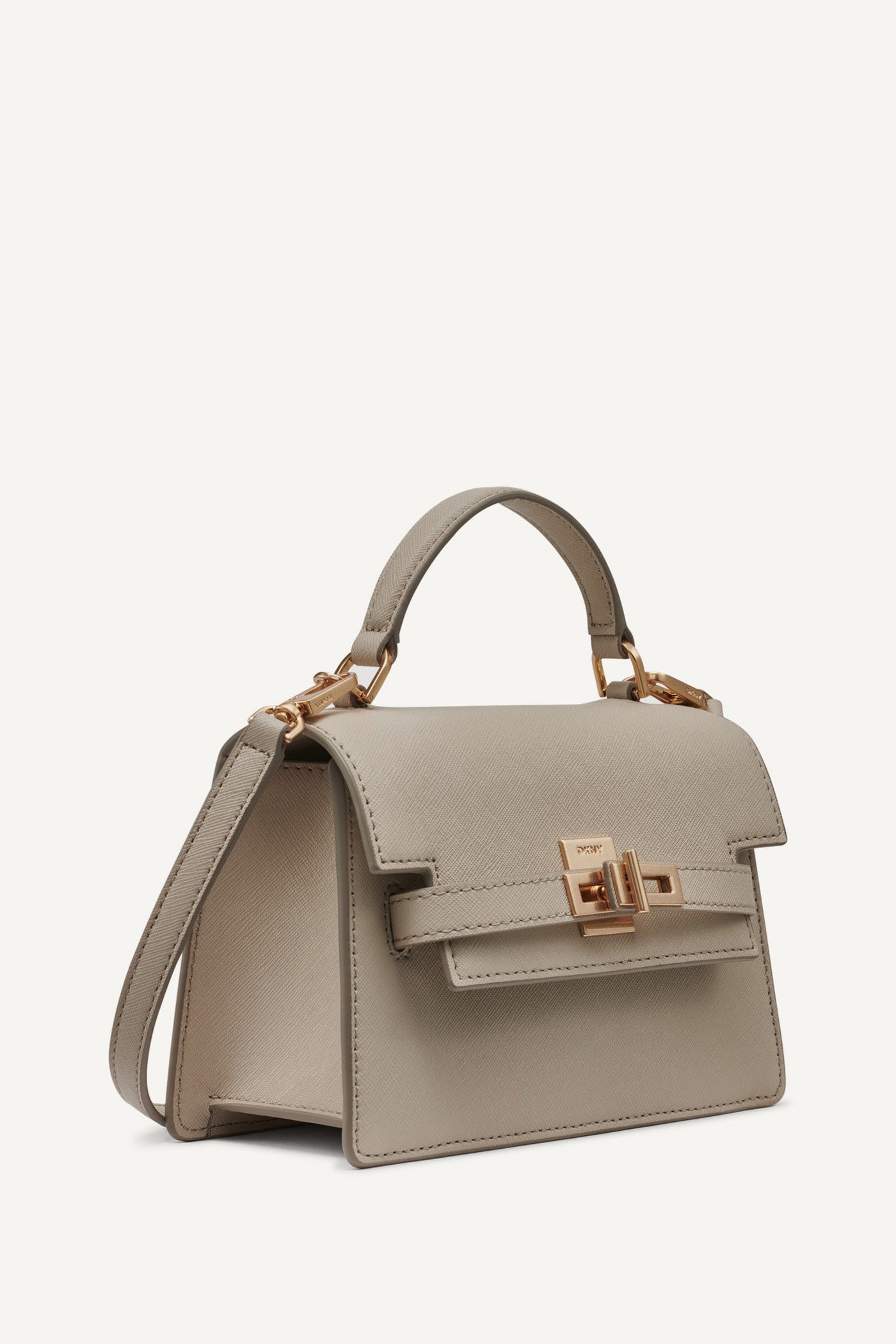 Elevate your everyday style with the MARCIA SMALL TH SATCHEL by DKNY. This beige top handle bag boasts a sleek silhouette, refined gold-tone hardware, roomy interior, and versatile carry options perfect for modern sophistication from day to night. Item ID: R53D1M09LT3