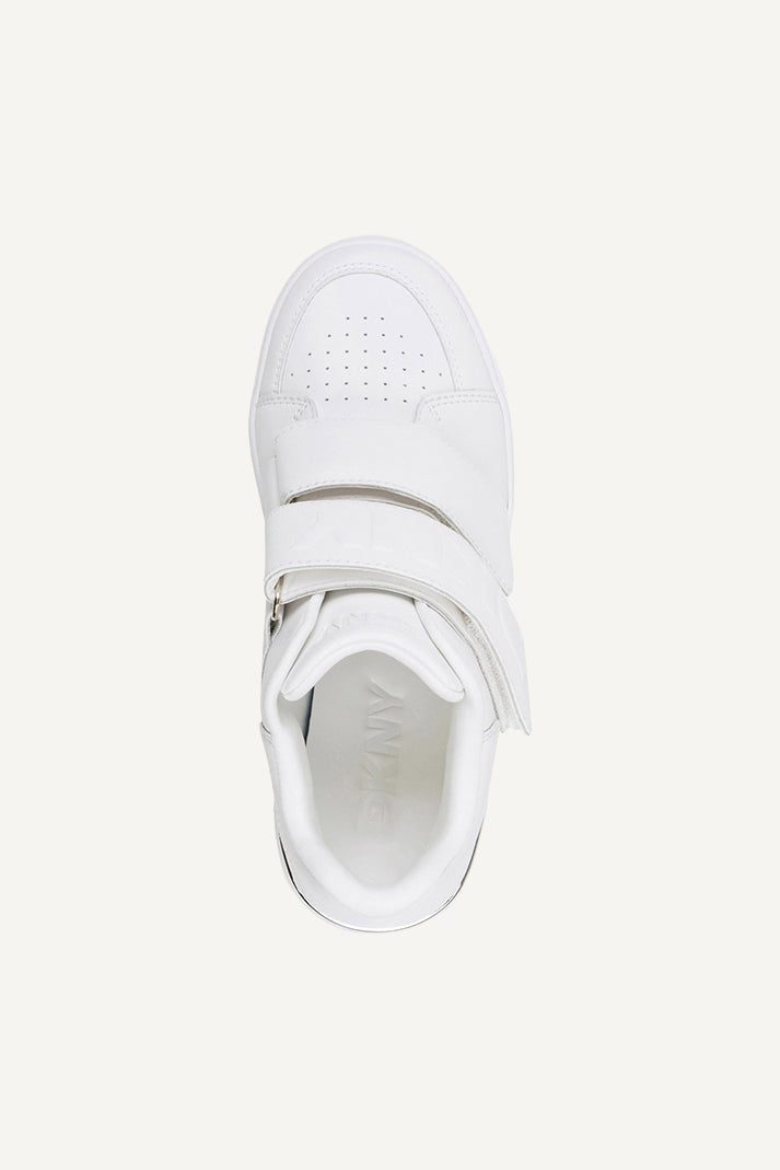 Step up your style with the DKNY Baley Wedge Sneaker in crisp white. This modern sneaker combines sporty comfort with chic elevation, featuring a concealed wedge heel, luxe detailing, and versatile design perfect for elevating any casual or athleisure outfit. Item ID: K1530021WHT