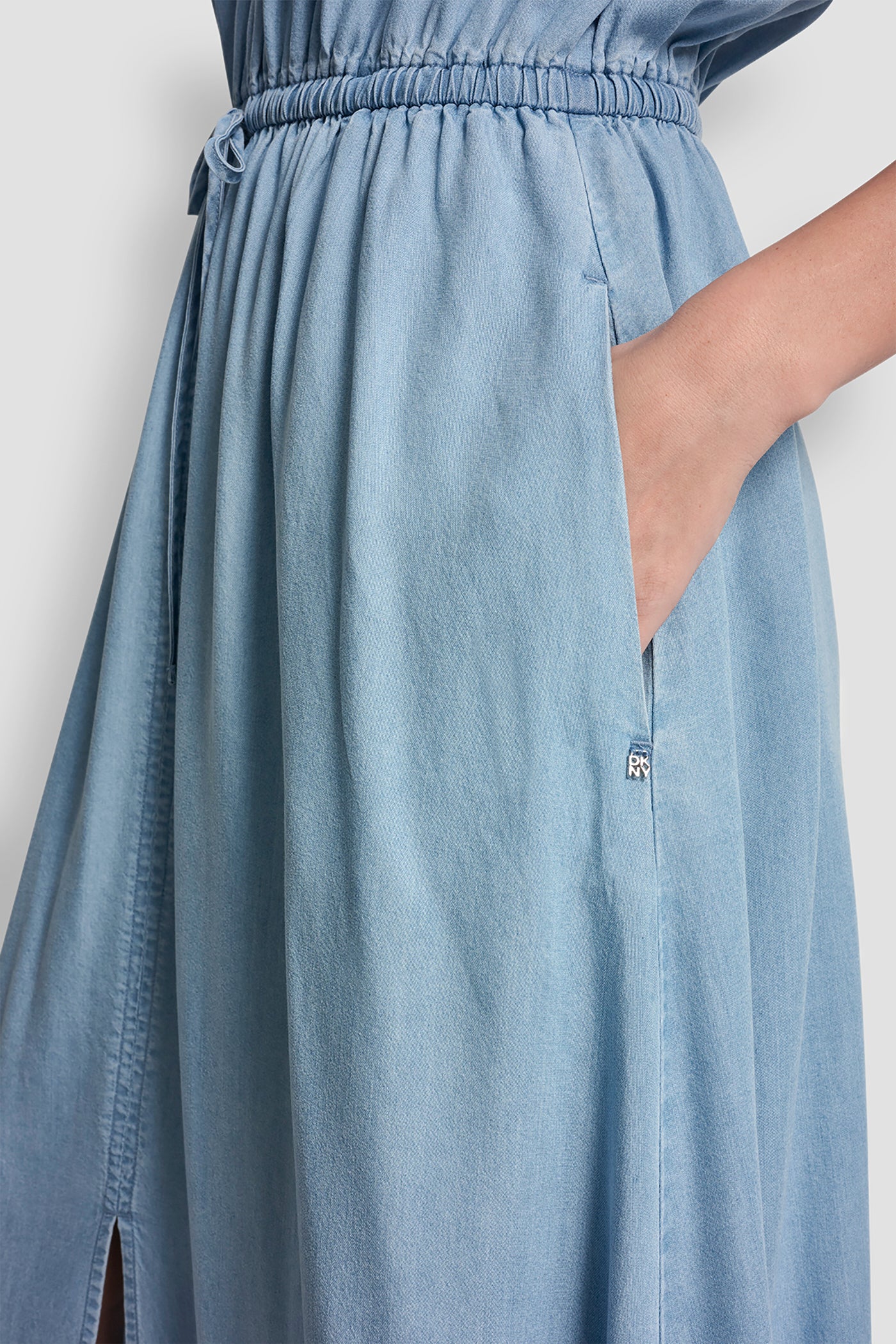 Elevate your wardrobe with this DKNY Ruched Shoulder Sleeve Dress in a stunning blue hue. Crafted from 100% TENCEL, it features elegant ruching at the shoulders, delivering both comfort and sophistication for any occasion. Perfect for the modern woman. Item ID: DJ6D9183FJZ
