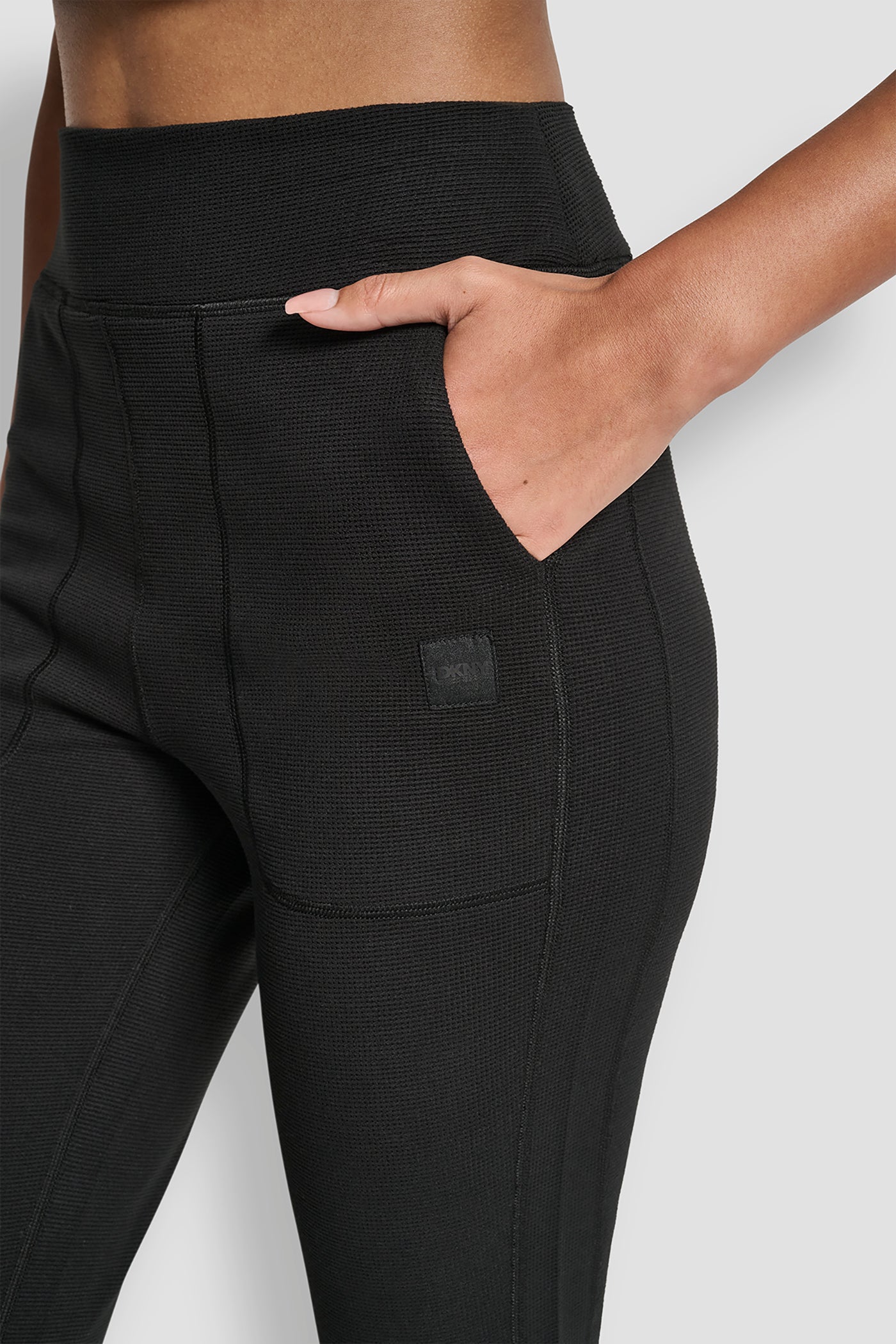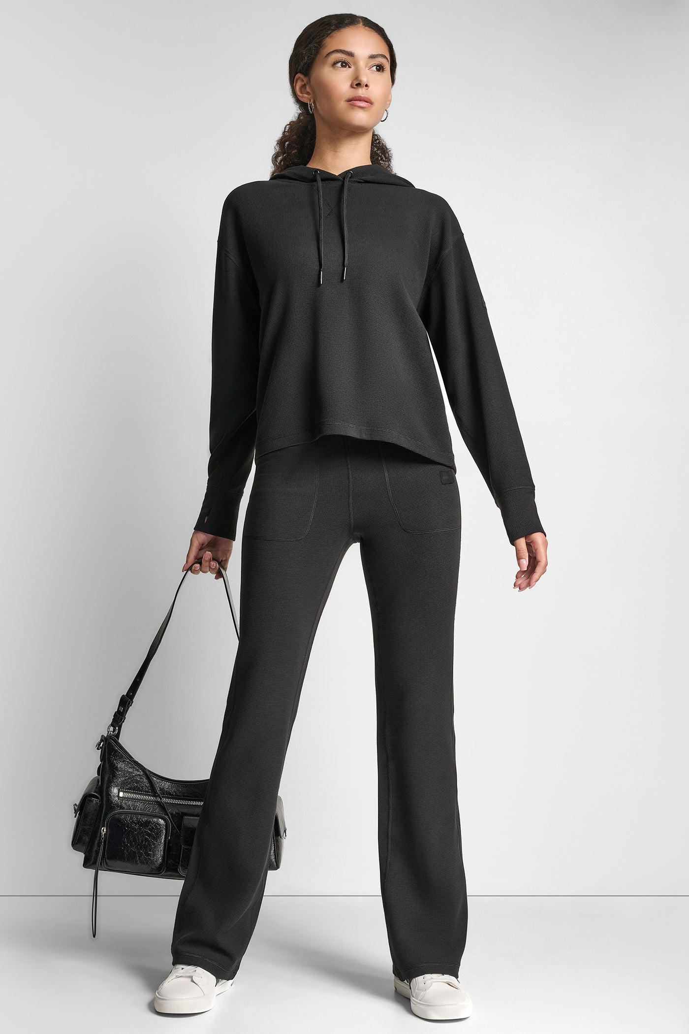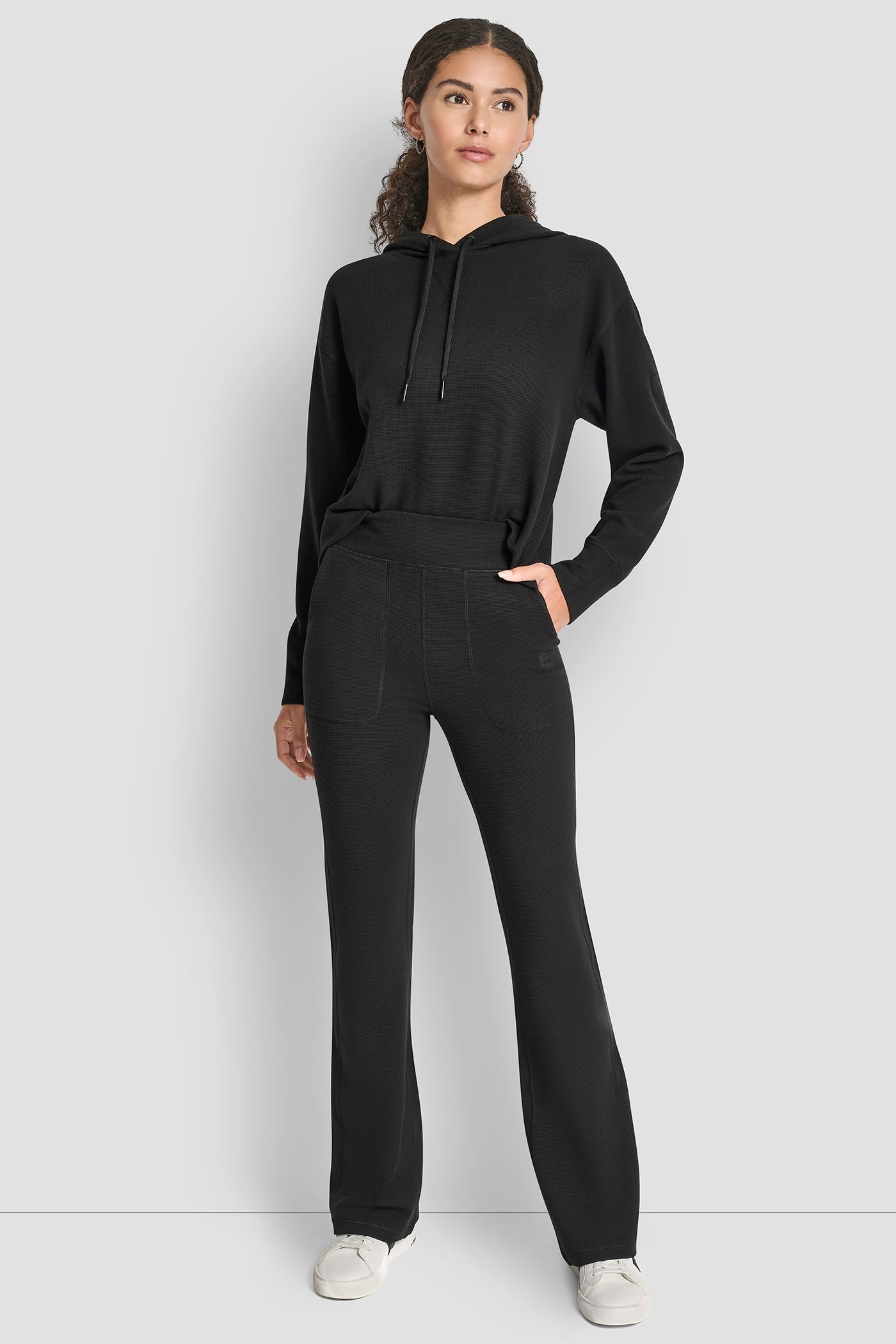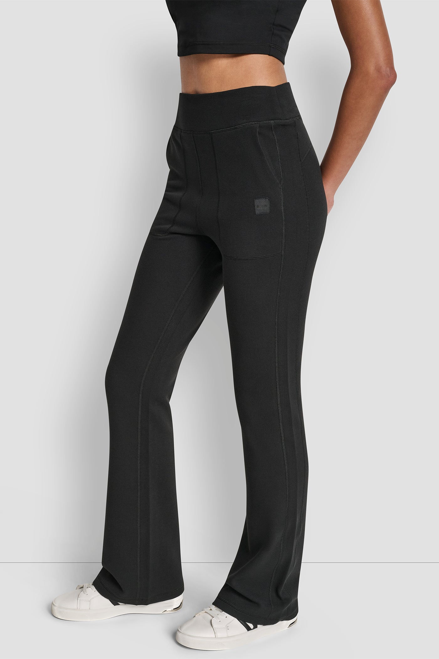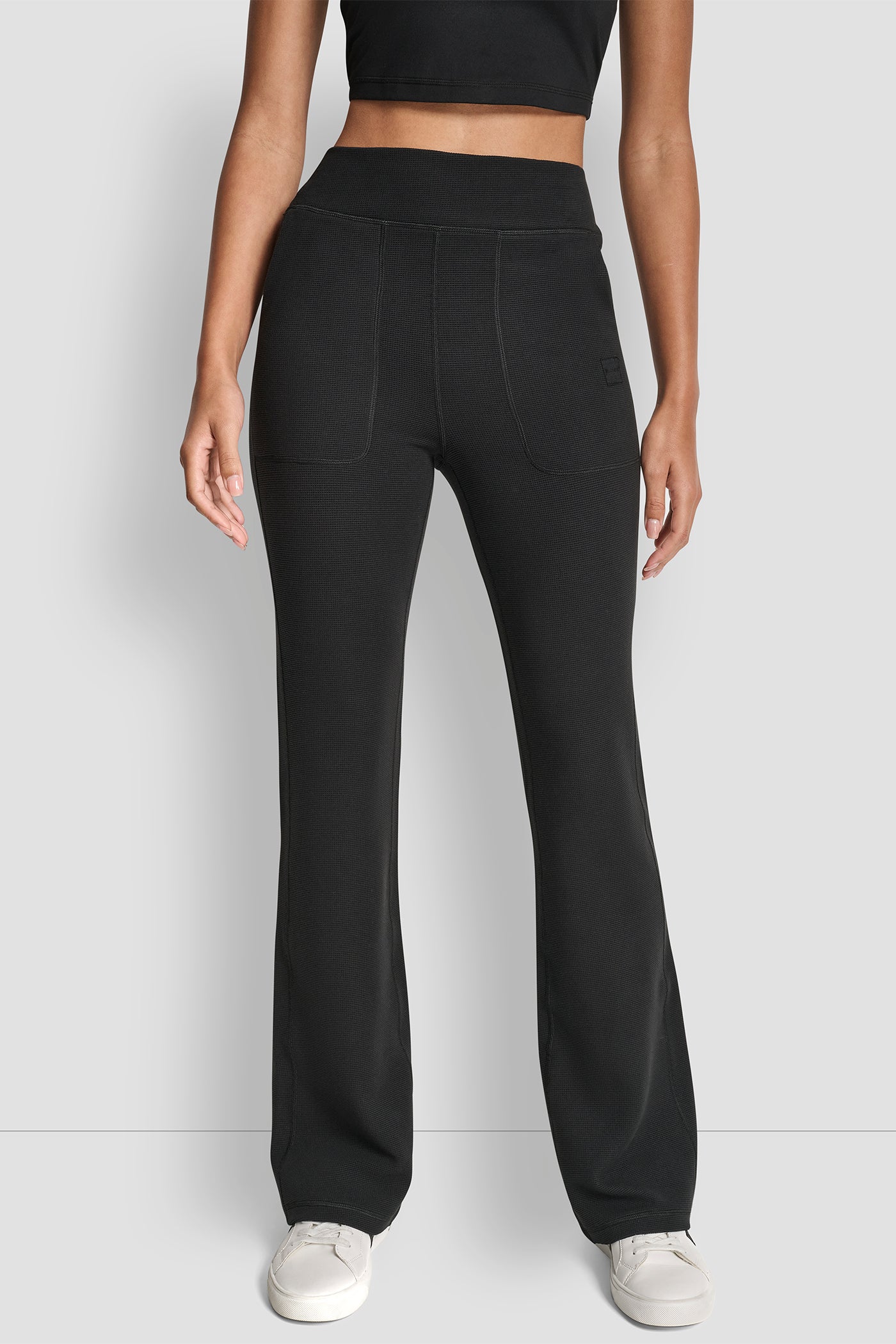Elevate your style with DKNY's TRNSND THMRL HW FLAR pants in classic black. Featuring a flattering high waist and modern flared silhouette, these versatile pants offer both comfort and sophistication perfect for any occasion, from professional to casual. Item ID: DP5P3708BLK