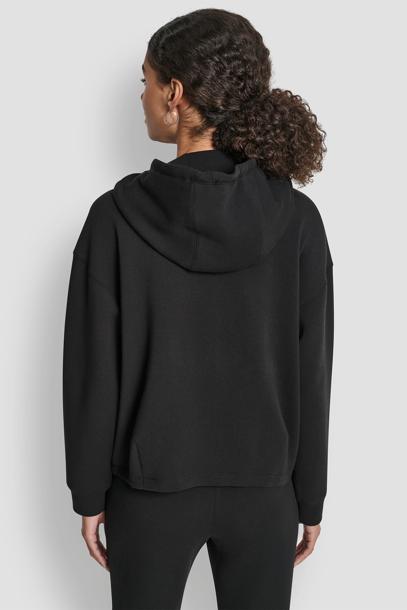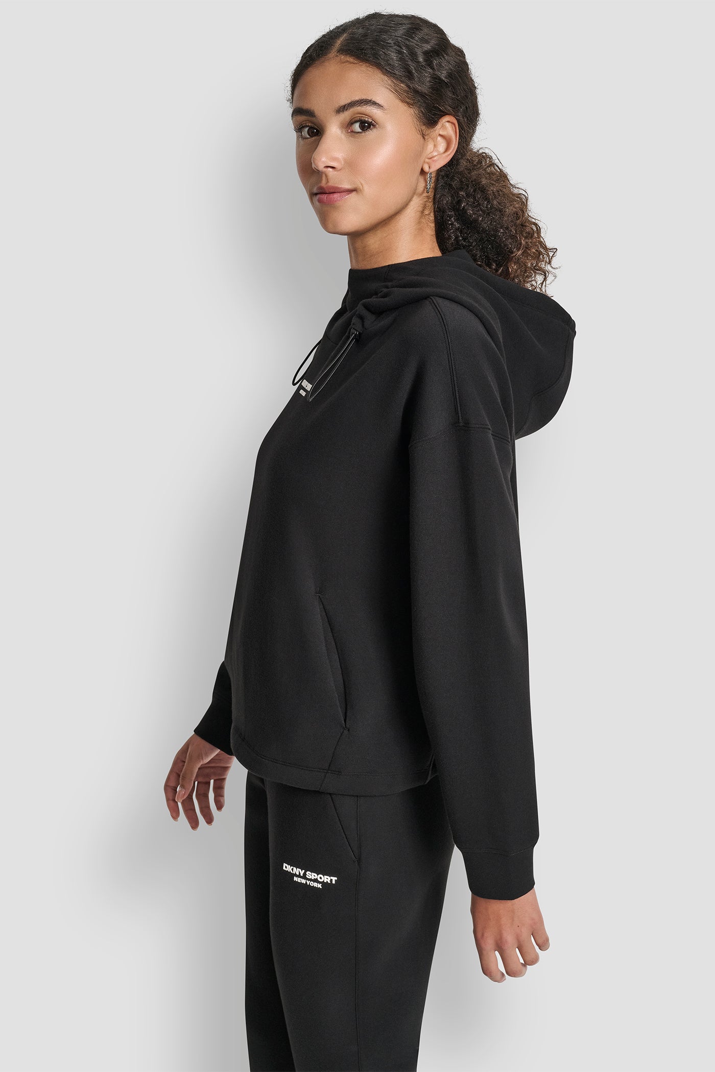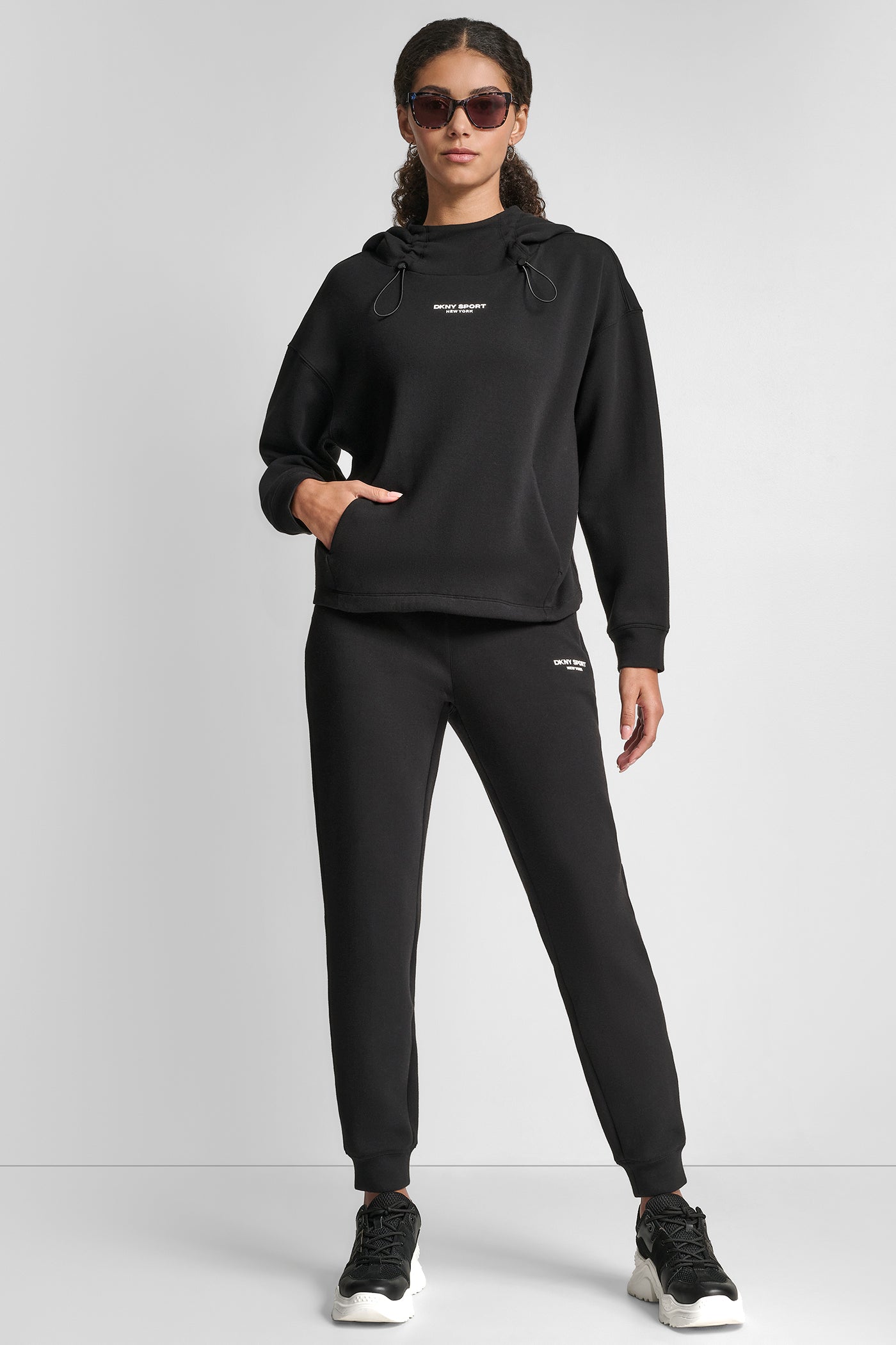 Elevate your athleisure look with the DKNY HD Sweatshirt in classic black. Featuring unique bungee detailing for contemporary style and customizable fit, this cozy sweatshirt blends comfort and sophistication perfect for everyday wear or layering during chilly workouts.