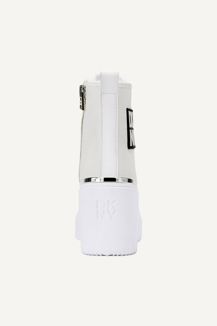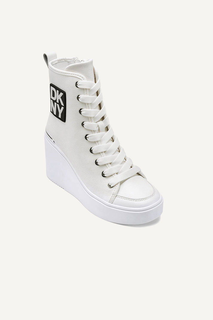 Step up your street style with DKNY's BAX WEDGE SNEAKER in fresh white. Featuring a modern wedge sole for added height and comfort, these sneakers combine sporty vibes with urban sophistication-perfect for elevating casual outfits or athleisure looks. Item ID: K1545892WHT