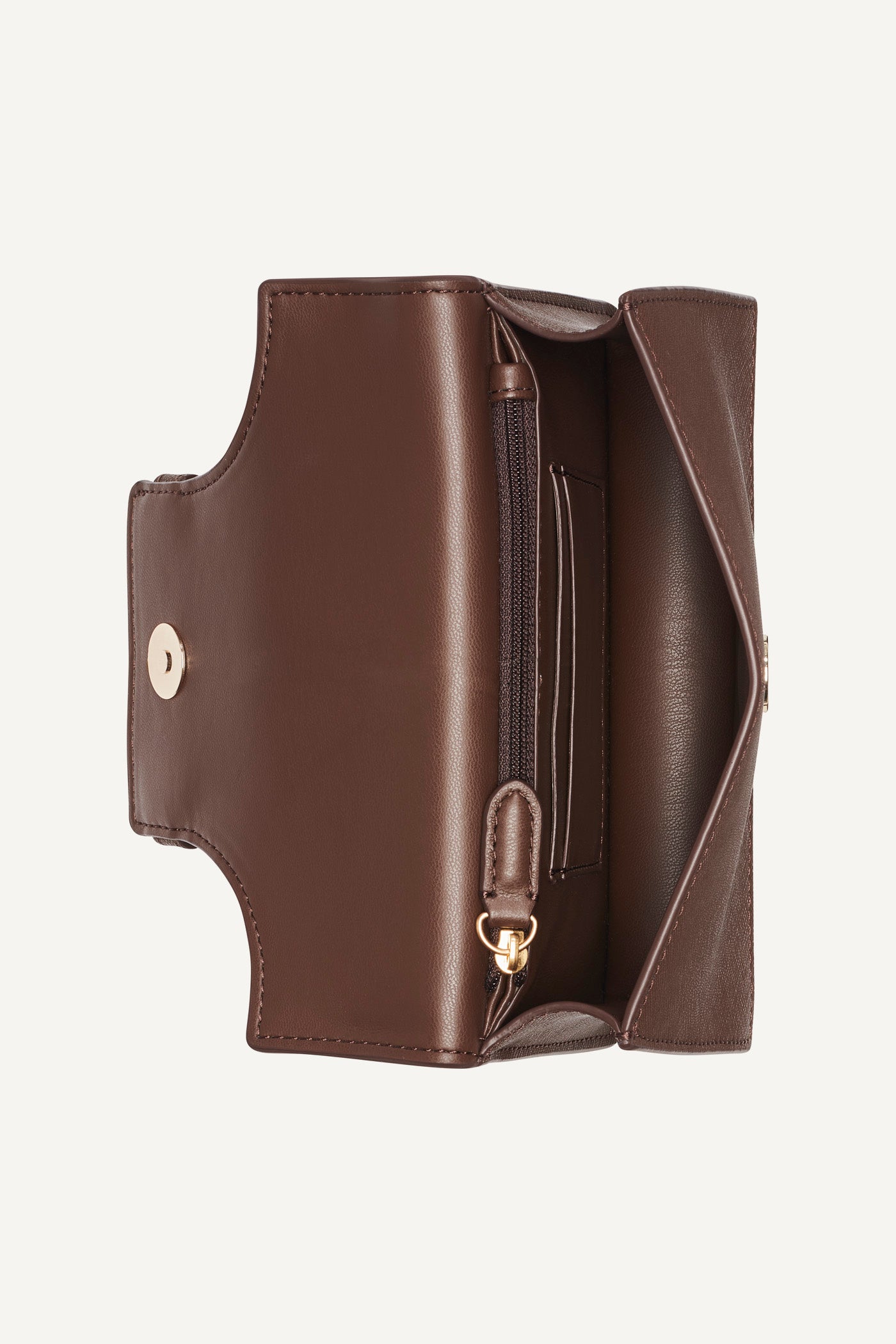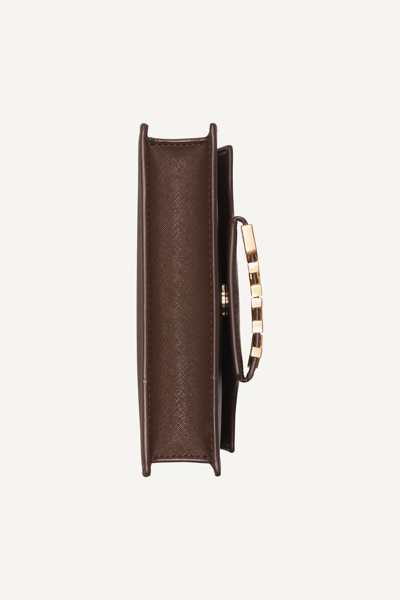 The DKNY AVRIL WALLET ON A STRAP in brown combines practicality and style. Compact yet spacious, it holds essentials securely. Featuring a detachable strap, it transitions easily from wallet to crossbody, making it perfect for organizing your cards and cash elegantly.